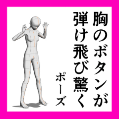 胸のボタンが弾け飛び驚く Clip Studio Assets